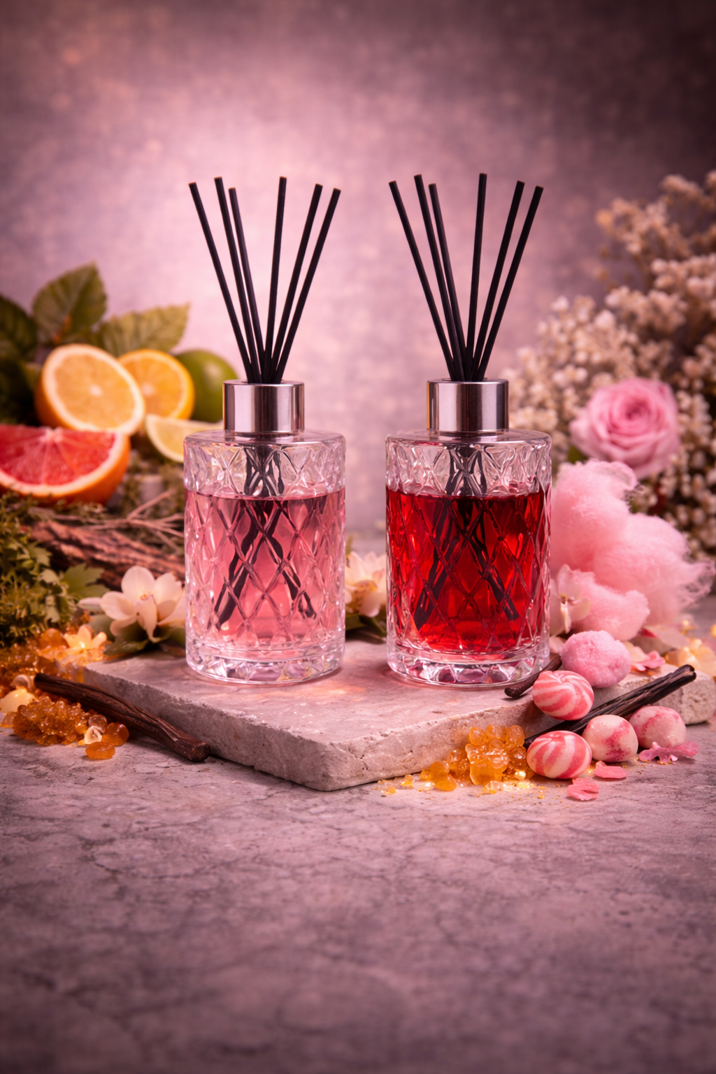 Mix and match your favorite scents to create a custom reed diffuser set made to elevate your space. Each diffuser comes in a decorative textured glass bottle, holds 150 ml / 5.1 fl oz, measures about 4 in tall by 2.5 in wide, and lasts 2+ months depending on room conditions. Because each bottle is handmade, slight color variations may occur and may not match the photos exactly. This is a natural part of the process and does not affect quality or performance.
